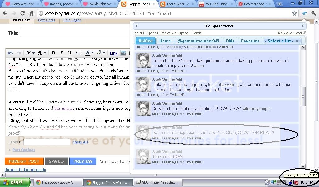 Anyway (I feel like I say that too much. Seriously, how many points do my blog posts have to have?), according to twitter and this article, same-sex marriage is now legalized in New York after senators passed a bill 33 to 29.